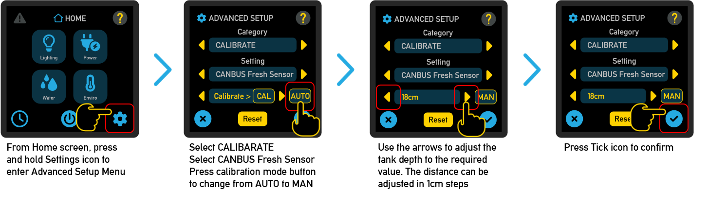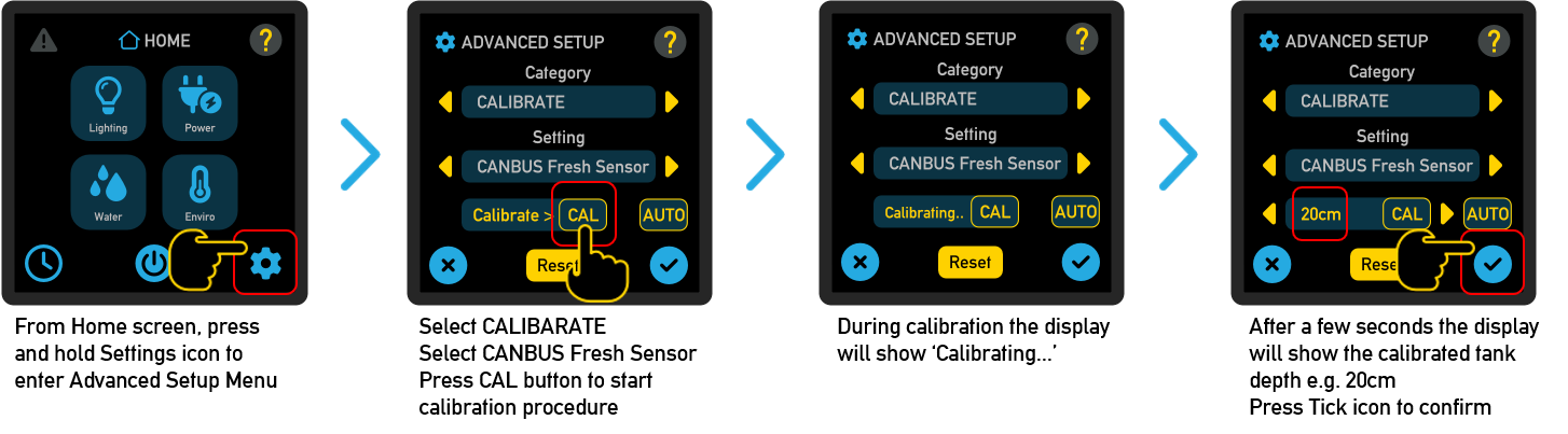 If a sensor needs to be re-calibrated for any reason, this can be done from the ADVANCED SETUP menu