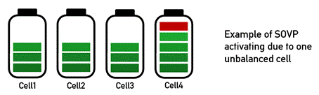 activates should any of the cell voltages fall below 2.5 volts, at which point