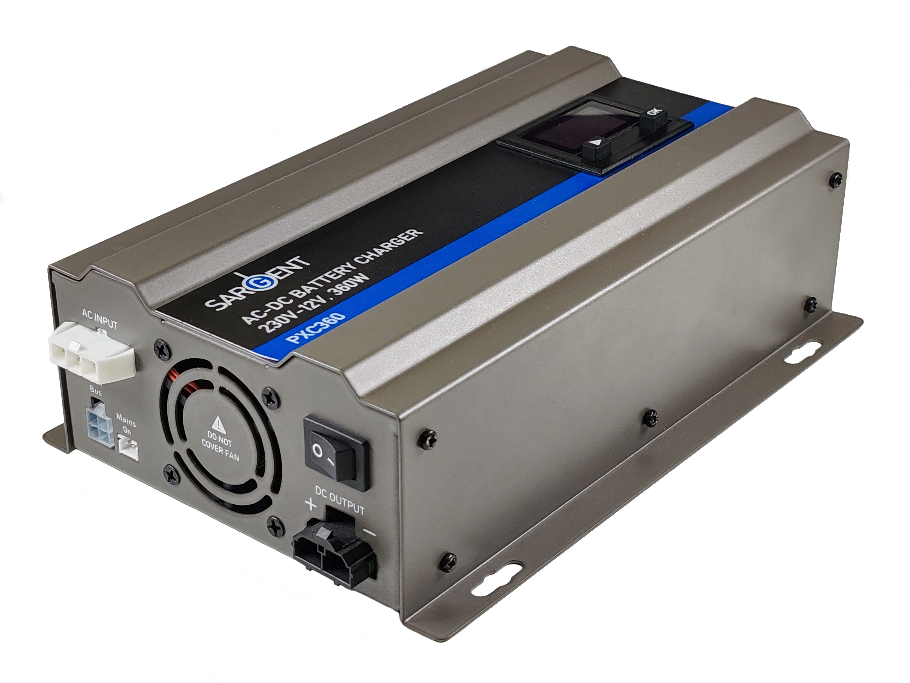 The PXC360 multi-stage battery charger is designed for leisure vehicle applications, providing power for both battery charging and 12 volt appliances. The integrated LCD display shows battery charging status and allows setup for different battery chemistries. A PSU mode allows the charger to be used without a battery fitted and the Silent mode avoids noise during overnight charging. By using the integrated CAN Bus communication, the charger is able to connect with Sargent power control systems to provide additional charger information.